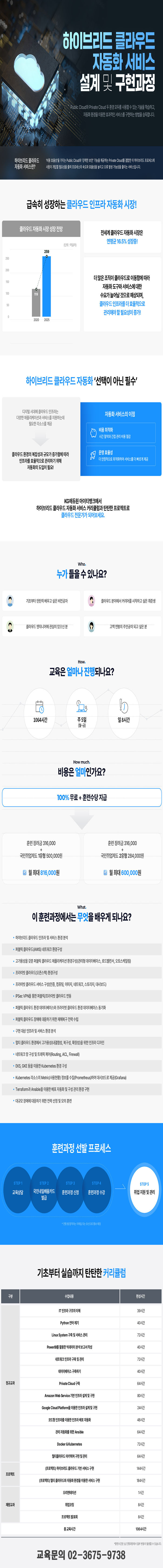 [KG에듀원 아이티뱅크 종로점] 과정명 : 하이브리드 클라우드 자동화 서비스 설계 및 구현과정 교육문의 : 02-3675-9738 교육일정 : 2025년 12월 08일 ~ 2026년 06월 05일 (6개월) 교육시간 : 09:00 ~ 18:00 홈페이지 : www.kgitkorea.com ![]() |
