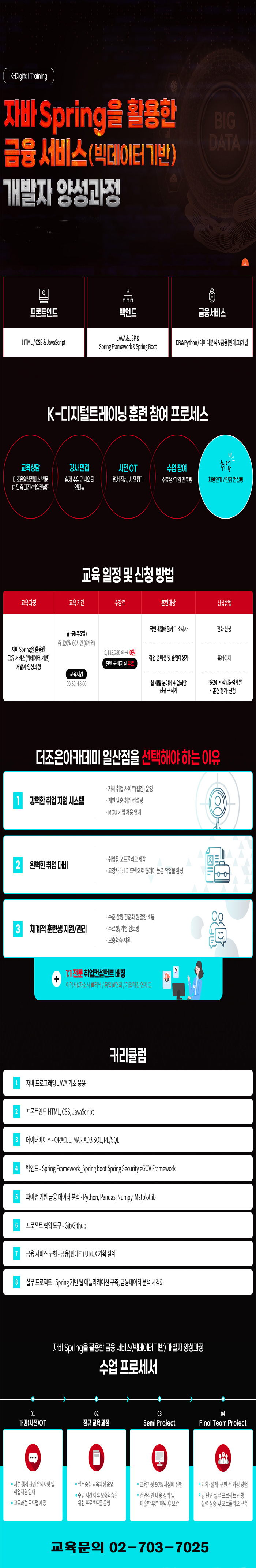 | 제목 | 자바 Spring을 활용한 금융서비스(빅데이터기반) 개발자 양성과정 | ||